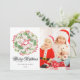3 PHOTO Red White Green Christmas Wreath Holiday Card