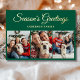 Add a touch of elegance to your holiday greetings with this personalised 3 photo collage Christmas card featuring gold foil text! Highlighting your favourite family moments, this festive green card showcases a multi-photo layout with luxurious gold foil text that reads, Season's Greetings along with your family name in matching foil. Sleek, modern, and full of holiday warmth, it’s a stunning way to share your love and memories this season.