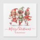 Cute dancing Christmas elves magnetic Holiday Card with place for 3 photos. Personalise with photos and family name.