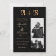 Custom 3 couple photos on black wedding invitation with monogram initials and Golden Typography in chic, simple and elegant form.