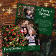 Three photos Merry Christmas modern script green holiday card with your custom personalised text and the ability to have the year or not.