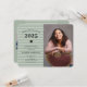 This graduation invitation offers a stylish design featuring 3 photos on a trendy sage green striped background.