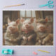 The suited up business trio of pig characters who bring warmth and cosiness to any room they grace. Dressed in their human-like attire, they lounge on a patterned couch that’s as inviting as their charming company. The middle pig, with its red and white striped shirt and suspenders, exudes a playful vibe, while the siblings on either side, decked out in jackets and hats, add a touch of sophistication. Their vintage living room setting, complete with framed pictures and a sense of nostalgia, is the perfect backdrop for their endearing antics.