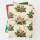 3 Pretty Christmas Santa Tree Candle Wrapping Paper Sheet