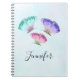A personalized notebook with a pretty design. 3 watercolor butterflies, painted pink, purple and green. A light blue watercolor background with hints of light pink.