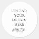 The sticker is made on wonderful paper and had no problem sticking to the bag that I purchased to put it on. I wanted to find a design that would be cute for the bride and groom and this one fit the bill as it has cute "bees" buzzing around and the wedding was taking place in a town called "Bee Cave". The packaging was great and protected the stickers. The website is easy to navigate and there are so many color choices. I had no problem finding a color that the bride was using on everything else selected. The design was adorable and there were many to choose from. You can make the figure as larger or smaller and you can place the photo and writting whereever you want to in the sticker. The printing is fabulous..better than expected.