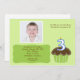 Cutie Cupcake invitation in green with a blue "3" in a chocolate cupcake. Add a photo and customise for your perfect day!