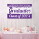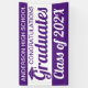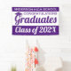Do you work at a school and want to celebrate your graduating class achievements on school grounds? Do you represent a housing development with a school within and want to celebrate the graduating class at the entrance of your community? Then this 3' x 5' purple and white "Congratulations Graduates" banner is for you! This celebration graduation banner is fully customisable from the text to the colour combinations. You can even personalise the banner with the school colours. All graduate banners are hemmed and welded for a clean finished edge. This class of 2024 banner is set as an "indoor banner" by default. For outdoor use, choose the "outdoor with grommets" option before checkout for easy installation on any surface.