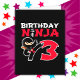 This Birthday Ninja 3 design is perfect for a 3 year old ninja birthday party theme. Features Japanese symbol for Ninjutsu with cartoon ninja karate kick the birthday boy or girl will LOVE! This ninja birthday design for boys and girls is a perfect fit for a 3 year old that likes ninjas, karate, taekwondo, judo or other martial arts.