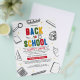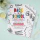 Tell everyone about your Back To School Supply Drive with this minimalist creative flyer featuring 3D colourful typography, "Back to School", wavy lines background, and fun illustrations of school supplies with yellow stars.