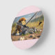 3D Cartoon Lion Eating Zebra – Wild Savannah Scene Round Clock
