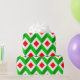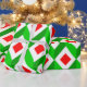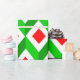 This wrapping paper has a mid-century modern design of cubes in Christmas colors.