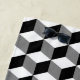 3D cubes in a geometric repeat surface pattern design in black, white and grey background.