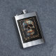Carry your favourite spirits in striking style with this unique flask featuring the detailed 3D Day of the Dead skull design. The design showcases a black base, richly adorned with vibrant and intricate floral and scroll patterns in contrasting metallic gold, teal, and copper, embodying the spirit of Día de los Muertos. These traditional sugar skull decorations include stylised marigolds (cempasúchil), the iconic flower of Día de los Muertos, along with swirling vines and symbolic flourishes. The metallic accents give the skull a dimensional, almost embossed appearance, making these culturally significant details truly pop. This flask is a bold and artistic accessory, perfect for adding a touch of personality to your everyday carry or as a memorable gift for those who appreciate unique and culturally rich designs.
