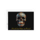 Invite your guests to a vibrant and memorable Día de los Muertos celebration with this striking postcard. The front of the card features a captivating 3D Day of the Dead skull design, showcasing a black base adorned with intricate and colourful floral and scroll patterns in metallic gold, teal, and copper, embodying the festive spirit of the holiday. Below this eye-catching design is a customisable text field, perfect for a short, impactful message like "Celebrate Día de los Muertos!" or a simple "You're Invited!".