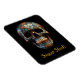 Add a vibrant and artistic touch to your refrigerator, locker, or any magnetic surface with this striking flexible magnet featuring the detailed 3D Day of the Dead skull design. The design showcases a black base, richly adorned with intricate floral and scroll patterns in contrasting metallic gold, teal, and copper, embodying the spirit of Día de los Muertos. These traditional sugar skull decorations include stylised marigolds (cempasúchil), the iconic flower of Día de los Muertos, along with swirling vines and symbolic flourishes. The metallic accents give the skull a dimensional, almost embossed appearance, making these culturally significant details truly pop. Below the captivating skull artwork is a customisable text field, allowing you to add a name, a meaningful date, or a personal message, making this magnet a unique and stylish way to celebrate Día de los Muertos or showcase your individual flair.