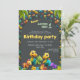 This super-cute first birthday invitation is the perfect way to invite all your little dinosaur lovers to your child's birthday party! Featuring adorable 3D dinosaur figures on a sleek black arched background, it's a total hit with kids and grown-ups alike. Whether you're planning a party for a toddler or an older dinosaur fan, this invitation is sure to be a hit!