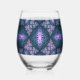 3D Fractal Art Abstract Pattern Blue Purple Pink Stemless Wine Glass