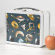This is a standard metal lunchbox that appears to work just fine. We designed this box ourselves with an uploaded photo and custom text on the front and back. It looks absolutely beautiful except the front of the lunchbox is not centered like it shows in the photo. The print borders don't align with the inset flat part of the box where the preview photo online showed it perfectly centered in there. The back looks nice and centered though.