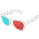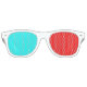 Glasses with a cyan lens on the right, and a red lens on the left, giving the appearance of oldschool 3D glasses.