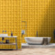 Bold 3D mustard yellow grid panel wallpaper, creating playful geometric depth that works perfectly in creative studios, hallways, kids' rooms, or modern cafes. High-quality peel-and-stick finish makes installation quickand removal clean, ideal for renters who want a statement wall without commitment.