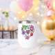 Tumbler with a pretty graphics of a 3D flower paper quilling effect ai image in pink, purple, red and green.