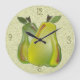 this three dimensional PEAR wall clock with its bold greens, yellows and speckled background would make a FUN ACCENT PIECE for your kitchen decor. artwork by kaps images