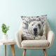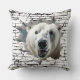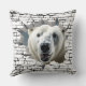 A stunning 3D wall break throw pillow featuring a realistic polar bear emerging through cracked concrete with tropical foliage behind. The hyper-detailed artwork creates an illusion of depth and movement, perfect for animal lovers and safari-themed decor.