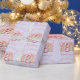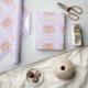 Custom birthday wrapping paper for an 8 year old girl featuring cute rainbow theme on a soft purple background. An image of a 3D balloon style, pastel pink number "8" is placed over a cute chubby and shiny rainbow. Cute little hearts accent the area. A sample "HAPPY BIRTHDAY" greeting is printed above, with a sample name printed below. You can personalize the wrapping paper to include your own custom name or other text.
