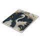 This ceramic tile features a 3D design of a swan and vines with stylised leaves. The colour scheme of gold and blue, along with dark white and dark grey, creates a striking contrast. The design is reminiscent of romantic illustrations and porcelain art, with realistic hyper-detail and carved surfaces. The pattern is seamless and repeatable, making it perfect for creating a continuous design on a wall or floor.