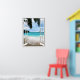 Beautiful sea view, faux window scene, for a windowless office. Very realistic 3d beach wall art, optical illusion poster that would look great on an office or study wall.