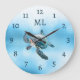 3D Turtle Silver Monogram Large Clock