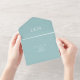 Eggshell Blue (colour code #A1C9C9) and white typography, text only, monogrammed, minimalist, simple plain wedding invitation which includes a tear-off rsvp postcard (3 in 1 as per images). Item includes senders address, a return address and text template fields for the wedding ceremony and reception as desired (edit text to suit your unique needs). You can also add couples initials, monogram. Modern and elegant budget friendly invitation to suit your needs.