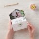 We absolutely loved how these wedding invitations turned out! We went with the standard paper stock, and it is plenty thick. One thing we probably would have changed is not doing the big white block on the front for the recipient address. Our invitations are a dark green. When we went to Staples to look at the options for labels, we saw some cute kraft stock colored ones that would have looked really cute on the dark green rather than using matte clear labels within the white block if that makes sense. They are still adorable though. I just fancied up my matte labels with a little leafy design and pretty font for the names so I feel like it helped it look more cohesive. Also, if you’re worried that they look pricey, make sure to put your quantity in because the price goes down significantly. We found this to be a super affordable, efficient and unique option that checked all of our boxes. When folded, they are the size of a little Google home screen see pictures. Perfect! Colors look exactly as we expected and the printing quality is clear and consistent.