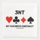 Bridge / duplicate bridge players who love playing game in 3NT (three no trump) will enjoy this paper napkin featuring the four card suits along with the saying "3NT My Favourite Contract". Make others do a double-take with a dose of bridge game attitude with this memorable bridge saying paper napkin!