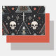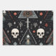 19" x 29" Multicolor Wrapping Sheets, 3pc. Set, Gothic Holiday Tree & Skull Print, Burnt Orange, Grey