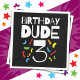 This Birthday Dude 3 design is perfect for a 3rd birthday party celebration for boys turning three years old. Features colourful kids birthday party graphic w/ Birthday Dude 3 design that your little dude will LOVE!