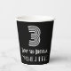 This vintage look and Roaring Twenties inspired birthday-themed paper cup design features a large art deco inspired appearance number “3”, along with the birthday greeting message “Happy 3rd Birthday,” and an editable name. The background is coloured black. Paper cups like this might be used at a party for somebody who is celebrating their 3rd birthday. [~Z0000542]