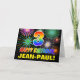 The front of this cheerful, colourful, and fun birthday-themed greeting card design features a large number "3" and the message "HAPPY BIRTHDAY,", both having a rainbow spectrum gradient inspired pattern colouring, along with a bold yellow customisable recipient name. The front also has a multicolored bursting celebratory fireworks inspired background pattern. The inside features a customised birthday greeting message, or could perhaps be cleared and left blank if a message is to be written by hand instead. An exciting personalised birthday card like this might be a fun way to send a message celebrating somebody’s third birthday. [~Z0000471]