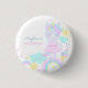 3rd birthday button with a funny unicorn, which is surrounded by cute pictures of a rainbow, a cloud, the sun, ice cream...
