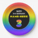 3rd Birthday: Colorful Rainbow # 3, Custom Name Paper Plate