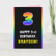 3rd Birthday: Colourful Rainbow # 3, Custom Name Card
