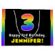 3rd Birthday: Colourful Rainbow # 3, Custom Name Large Gift Bag