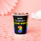 This joyful and cheerful birthday themed paper cup design features the number “3“ having a multicolored rainbow spectrum inspired gradient pattern, along with the message “HAPPY 3rd BIRTHDAY,”, and a personalised recipient name. Upbeat birthday themed paper cups like this might be used at a birthday party celebrating somebody’s 3rd birthday. [~Z0000639]