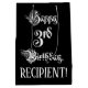 This lavish and ornate birthday giftbag design features the message “Happy 3rd Birthday,” in fancy script style text, on a black coloured background. It also features an editable recipient name. An opulent gift bag like this might be used when wrapping presents being given to somebody in celebration of their third birthday. [~Z0000557]