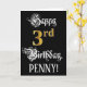 3rd Birthday — Fancy Script; Faux Gold Look; Name Card