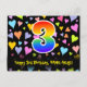 3rd Birthday: Fun Hearts Pattern, Rainbow 3 Postcard