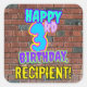 This fun birthday-themed square sticker design features the message “HAPPY 3RD BIRTHDAY,” having a vibrant, colourful, urban street art and graffiti inspired appearance, along with a customisable recipient name. The background features a pattern inspired by the look of a brick wall. Fun, personalised stickers like this might be given as a birthday gift, or used while wrapping gifts, or perhaps used as birthday party decorations when celebrating somebody’s 3rd birthday. [~Z0000535]