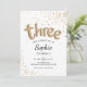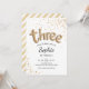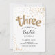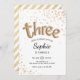 3rd Birthday Invitation for girl or boy. White, gold design with faux glitter confetti. Features stripes and trendy balloons letters three. Perfect for an elegant third birthday party. Message me if you need further customization.