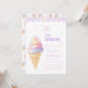 3rd birthday invitation with sweet and delicious ice cream drawn in soft pastel colour in watercolor style.